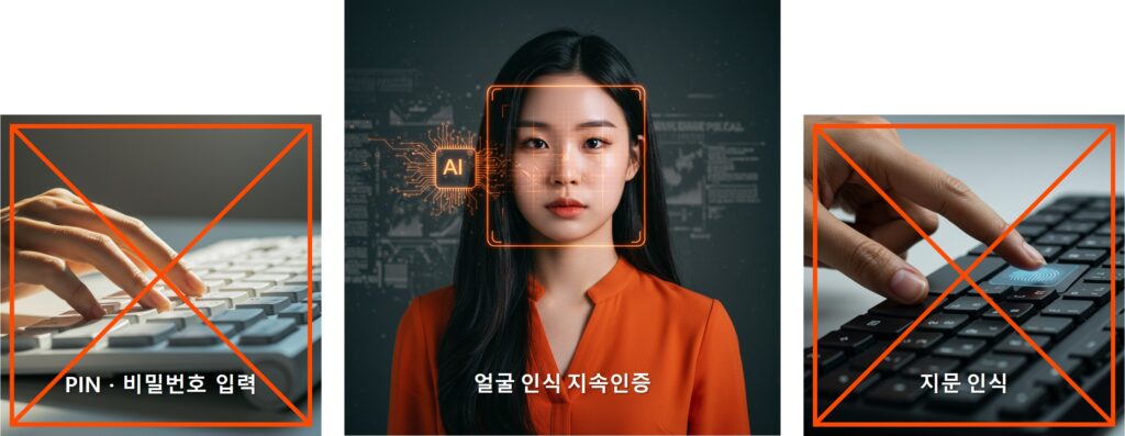 최초 인증 이후의 보안 공백을 해결하기 위해 ‘무자각 지속인증’이라는 해결책이 제시됐습니다. 보안 공백 없이 사용자의 상태를 지속적으로 검증하는 것은 물론, 사용자에게 인증을 위한 비번입력, 지문인식 등 별도의 행위를 요구하지 않는, 즉 사용자가 자각할 필요가 없는 ‘무자각’의 개념까지 더해진 ‘무자각 지속인증’ 기술이 주목받고 있습니다.